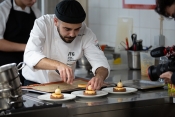 Bernardo Lourenço, da Escola de Hotelaria e Turismo do Douro-Lamego, foi o grande vencedor na categoria Pastelaria Derovo, com o prato "Tributo à Maçã".